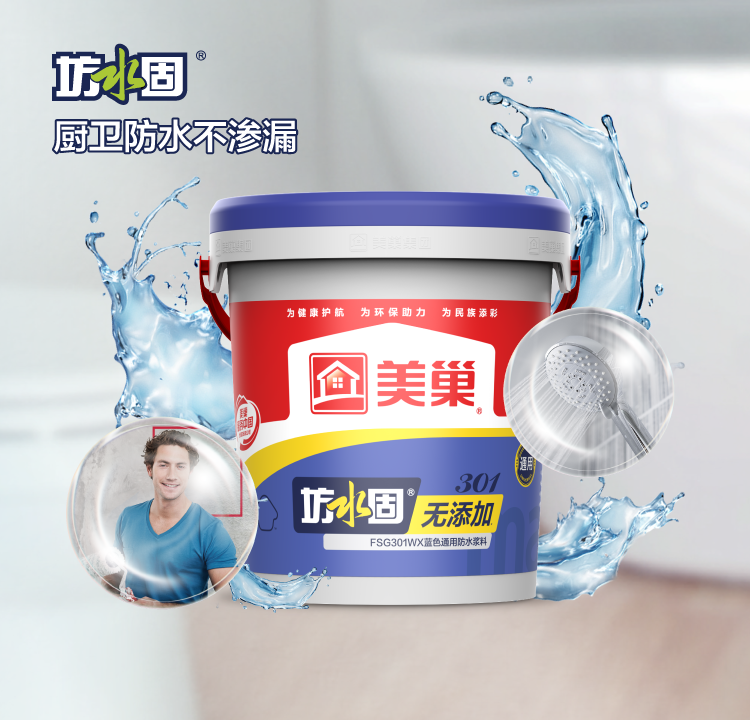 坊水固FSG301WX無添加藍色通用防水漿料是一種彩色雙組份聚合物水泥防水漿料。本品采用特殊高分子乳液與無機膠凝材料有機結合,形成致密的防水涂層,起到更強的抗?jié)B防漏效果。同時應用“復合超疊加”技術和彩色升級配方,具有彩色防漏刷、易涂刷、易攪拌易分散、滾涂抗飛濺、干燥快、可操作時間長、施工方便、施工周期短、抗?jié)B防漏、粘結強度高、長期防水更持久等特點,可直接在本品防水涂層上進行砂漿抹灰和粘貼瓷磚。本品主要用于室內廚房及衛(wèi)生間地面等的防水處理和地板下防潮處理。