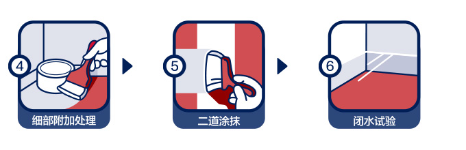 施工方法: | 施工質(zhì)量配比為A液料︰B粉料=2.05︰2.45,將液料倒入桶中,再緩慢加入粉料,攪拌成均勻無(wú)結(jié)塊的漿料,靜置2~3分鐘,再攪拌1~2分鐘。用工具涂刷2~3遍,涂層厚度應(yīng)均勻,不得有漏刷或堆積現(xiàn)象,前后兩遍的涂刷方向應(yīng)相互垂直,應(yīng)在前一遍實(shí)干后再涂刷下一遍。單層涂刷厚度不超過(guò)1mm,涂膜過(guò)厚,會(huì)導(dǎo)致干燥時(shí)間長(zhǎng),涂膜防水可靠性下降。細(xì)部節(jié)點(diǎn)應(yīng)采用網(wǎng)格布加強(qiáng)涂刷。攪拌的防水漿料須在1小時(shí)內(nèi)用完。待涂膜完全干燥48h后方可進(jìn)行閉水試驗(yàn)。 |